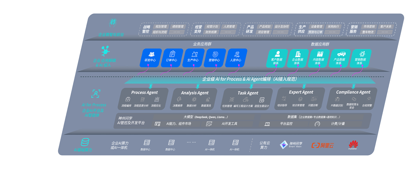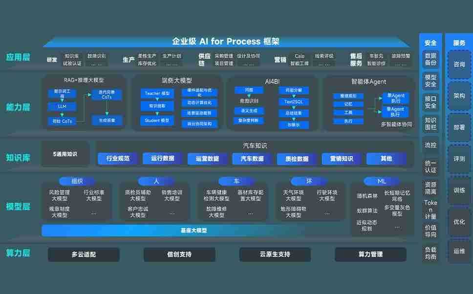 NG娱乐问学智车解决方案是一套基于AI技术的汽车行业智能化系统,,覆盖从底层算力到顶层AI应用的全栈方案。。。。方案由算力层、、、、模型层和应用层组成:算力层,,,,方案支持多种一体机配置,,具备云端灵活部署、、、多云适配以及动态优化计算资源的能力;模型层,,NG娱乐问学平台版提供了企业级AI应用一站式构建与管理平台,,,,支持基于后训练强化技术的汽车企业专属模型的训练、、、评测和运营;应用层,,NG娱乐问学DeepSeek版提供包括超级员工、、、、智能招采、、智能营销、、、、智能客服、、、AI for BI等一系列解决方案,,,,可助力汽车行业实现数字化转型,,,,让管理更智能、、、响应更敏捷。。。